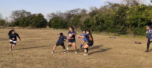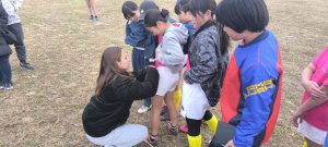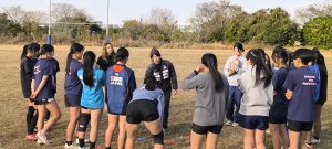 本日の練習にはTKM所属、セブンズ日本代表の内海春菜子先輩が来てくれました。なんとワールドシリーズのドバイ大会で3位になったときのメダルを持って!