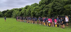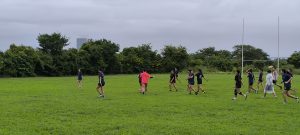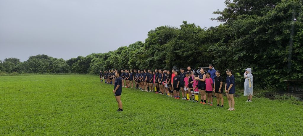 練習前にはミーティングで12人制の確認。12人制は頭が重要です。1つ1つ動作を確認してシステム練習をしました。