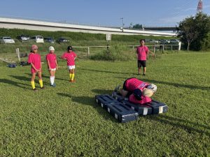 水島監督のキックが不調で、それを見かねたトレーナーでもあるカホコーチが私に任せなさいとばかりにナイスキック‼️ さすが若い‼️ 選手達から「カホちゃん」と呼ばれる優しい皆のお姉さん的存在です。プリンセスOGでもあります。